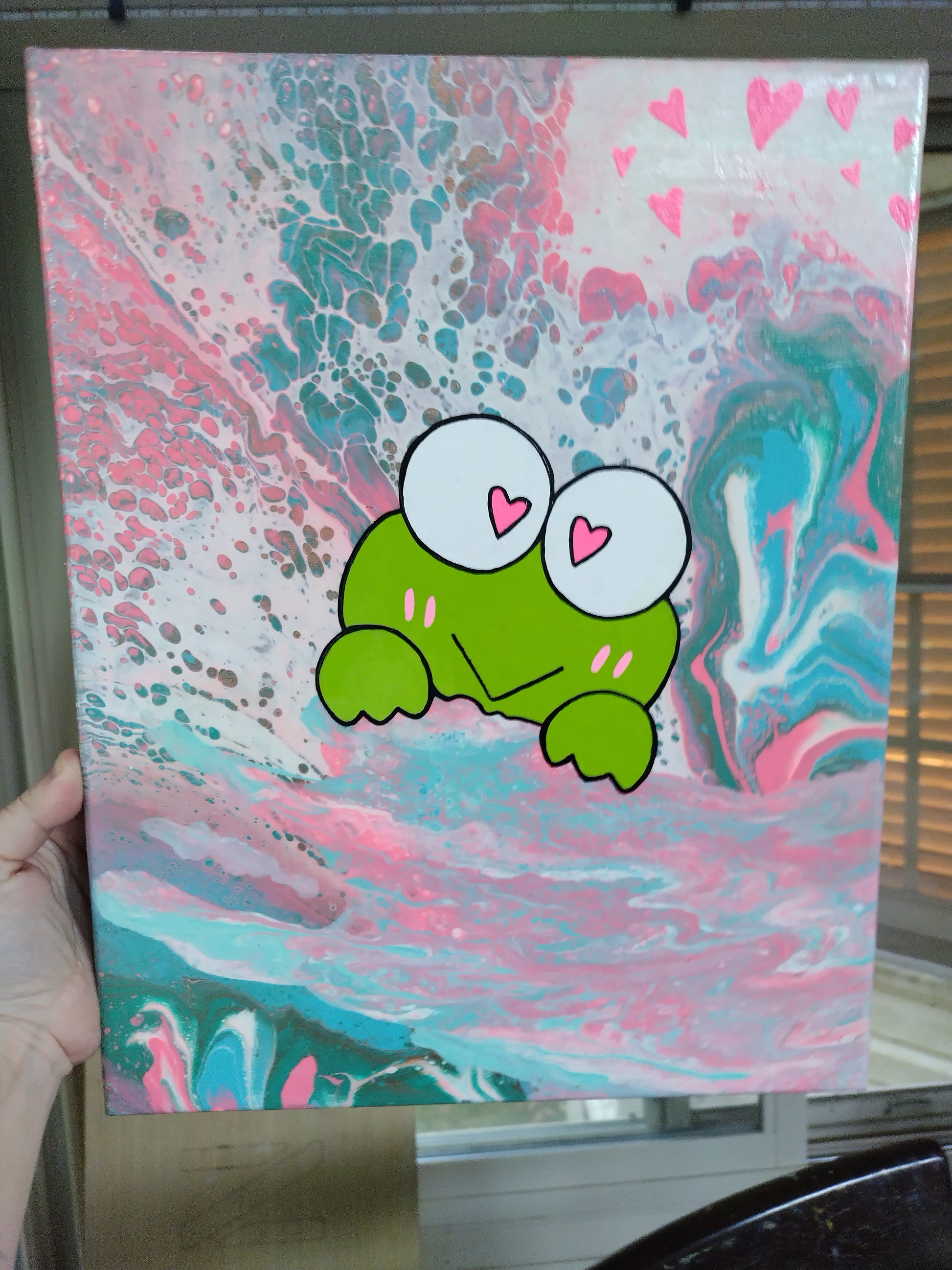 Canvas painting, paint pour art Keroppi
